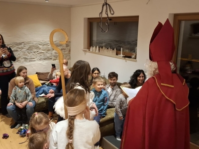 Thomas Andonie mit Selina Ferstl, Stefan Kommescher mit Franziska Kommescher und Matthias Handfest mit Elena Schmid waren rund um den Nikolaustag unterwegs, um Familien zu besuchen, die den Nikolaus Dienst bestellt hatten.
