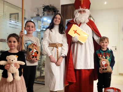 Vergangenen Advent waren für die Kolpingsfamilie drei Nikoläuse und drei Engel im Einsatz.