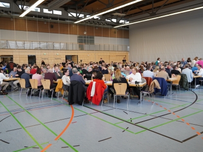 Volles Haus bei der WählBar von Kolping Dietfurt. Mehrere hundert interessierte Dietfurter waren am Sonntagvormittag in die Sieben-Täler-Halle gekommen, um sich zwischen Sportlerball Töging und den Auftritten der Moritatensänger am Nachmittag anzuhören, was die drei Bürgermeisterkandidaten zu sagen hatten. So groß war das Interesse, dass noch Sitzgelegenheiten und Tische herbeigeschafft werden mussten.
